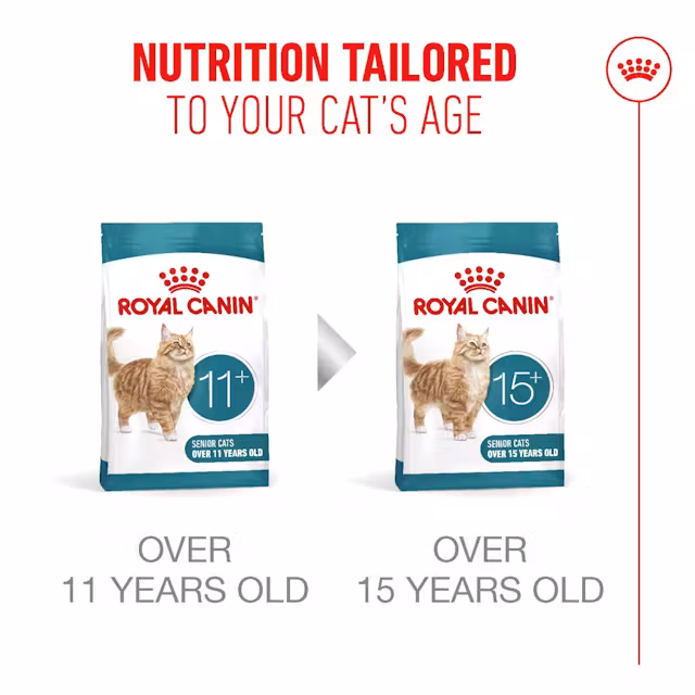 Designed for—and tested with—senior cats, ROYAL CANIN® Ageing 11+ features easy-to-eat kibble to give your cat an enjoyable mealtime experience. This formula, featuring our HealthyAge7™ Complex, provides a precise nutritional blend designed to help maintain seven key dimensions of health and vitality in senior cats: Appetite and weight: Highly palatable and energy-rich to support a healthy appetite and help maintain an ideal weight.