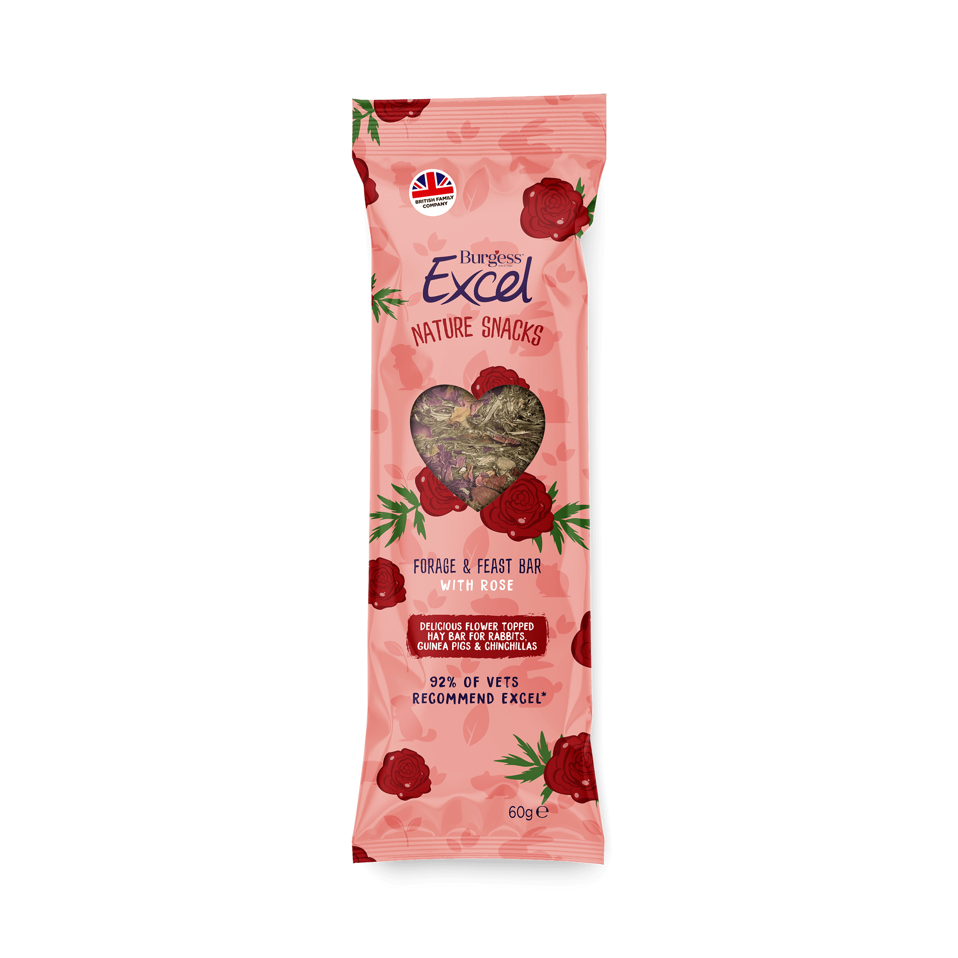 Excel Forage & Feast Hay Bar with Rose is a delicious flower topped hay bar for rabbits, guinea pigs and chinchillas.