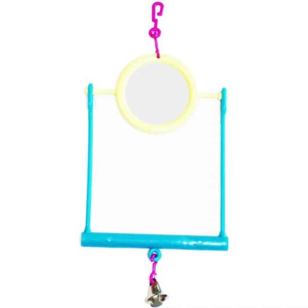 Let small birds have fun with the Happy Pet Mirror Swing. Place the mirror swing in the cage and keep the bird entertained for hours with the company of their own reflection. The swing and bird safe nickel bell are great added extras to exercise birds and keep them healthy.