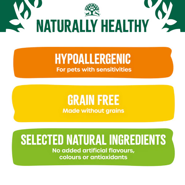 - Hypoallergenic cat food with no beef, pork, soya, eggs, dairy & wheat