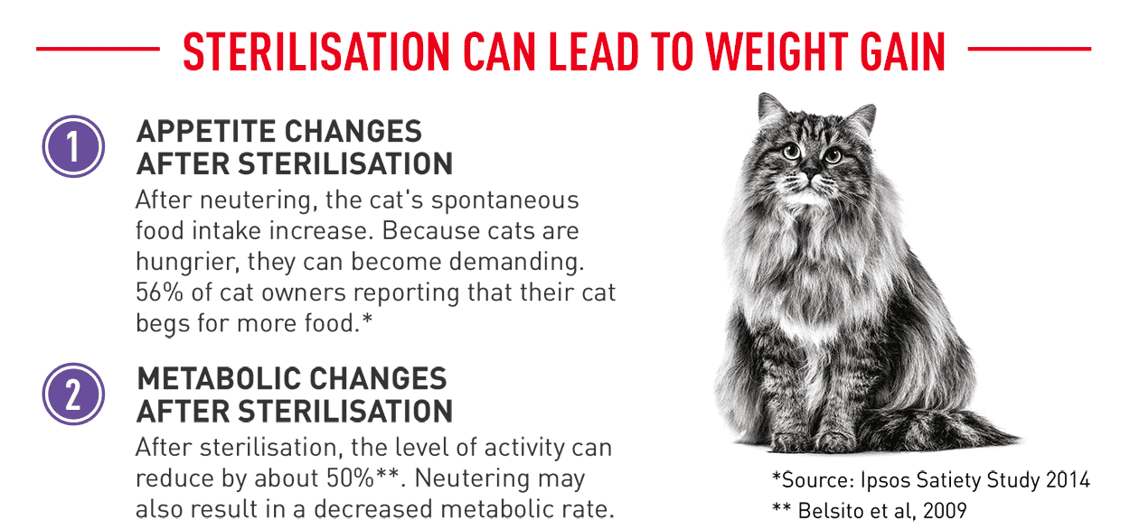 Royal Canin takes the health of your pet seriously. Appetite Control Care is a complete feeding range for cats at risk of gaining weight, for example after sterilisation. It includes one kibble formula and a choice of three wet formulas. In a Royal Canin international study, over 90% of cats owners feeding Appetite Control Care reported that their cats’ begging behaviour was controlled after 4 weeks of use.