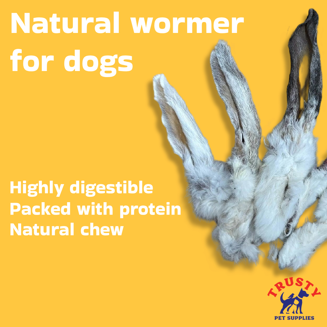 They are a natural wormer for dogs. The fur that covers the rabbit ears is regarded as an effective way for worming. Removing parasites from your pet’s body, the brushing action of rabbit fur also works naturally to protect against worms.